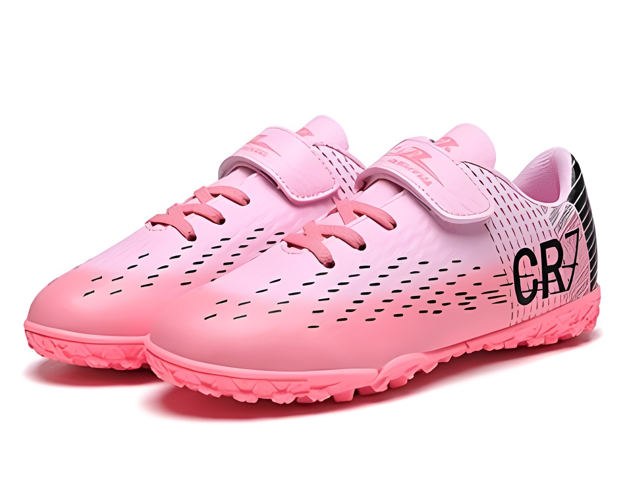 Funkcjonalne buty piłkarskie Turfy (TF) dla dzieci, zaprojektowane z myślą o grze na sztucznej nawierzchni. Model w różowej kolorystyce zapewnia komfort, stabilność oraz dobrą przyczepność, a dzięki zapięciu na rzep jest łatwy i szybki w zakładaniu.