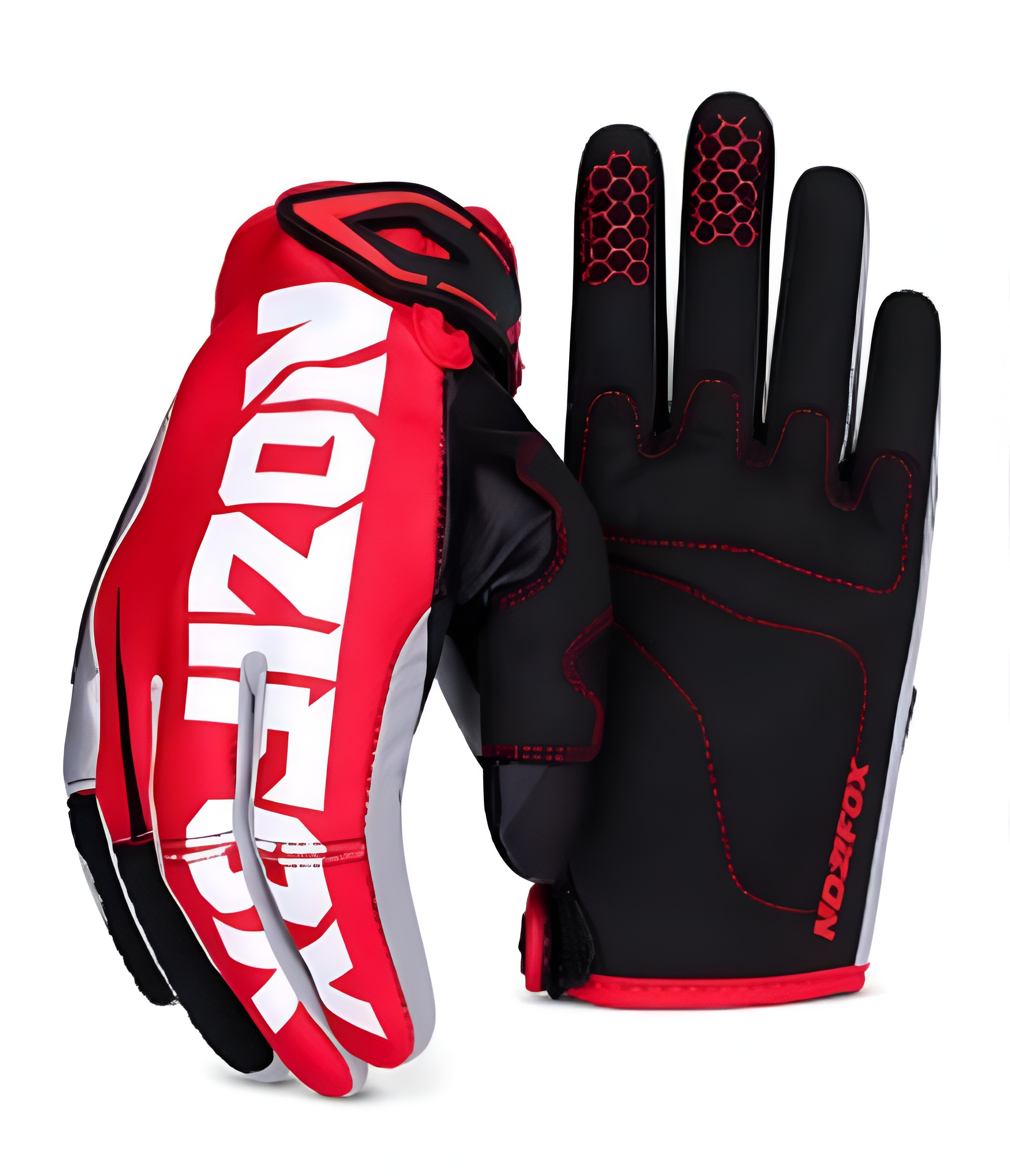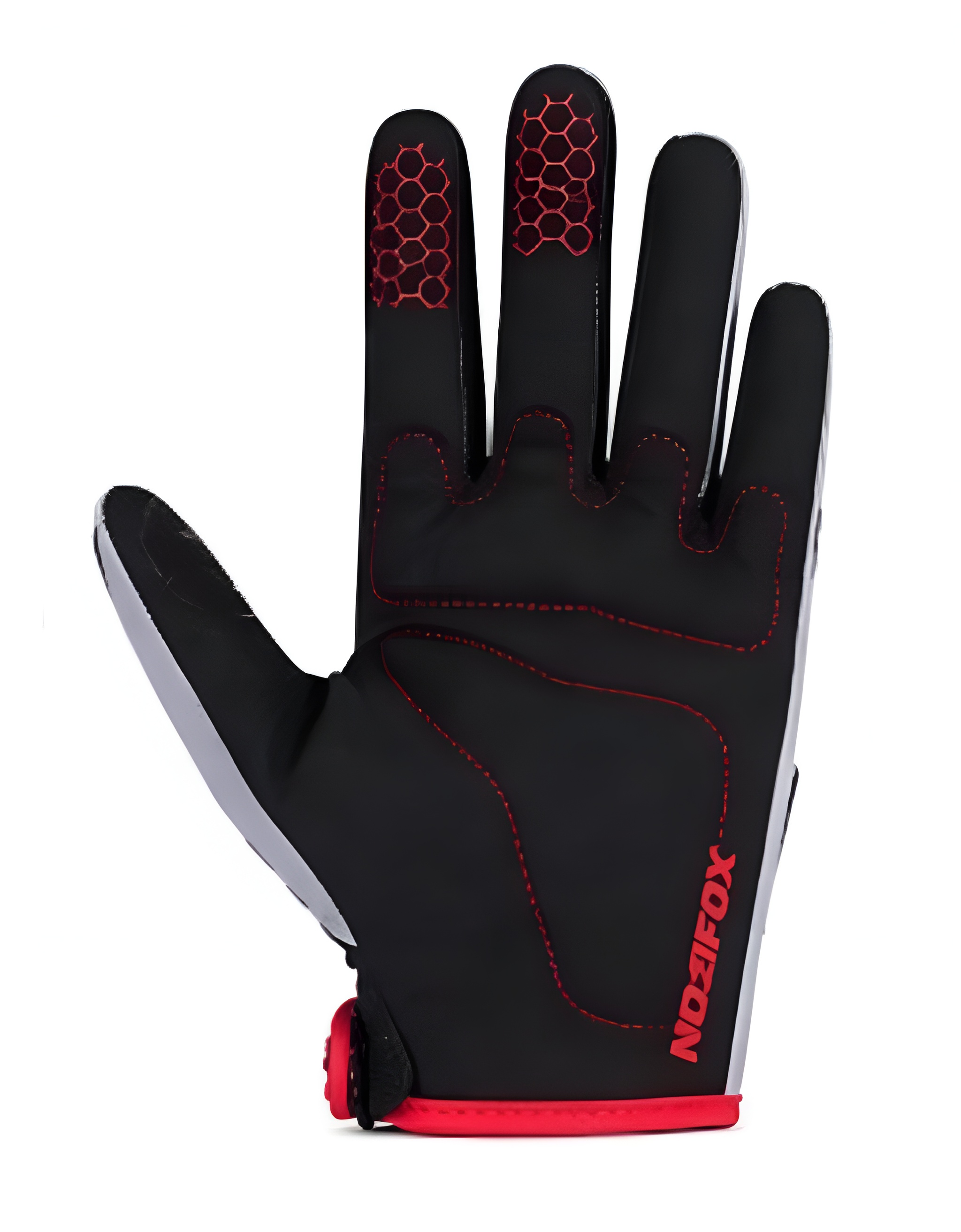 Profesjonalne rękawice enduro NOZIFOX w dynamicznej czerwono-czarnej kolorystyce. Zaprojektowane z myślą o maksymalnej kontroli, trwałości i komforcie podczas jazdy w trudnym terenie. Idealne dla motocyklistów motocross i enduro, którzy oczekują niezawodności i sportowego stylu.