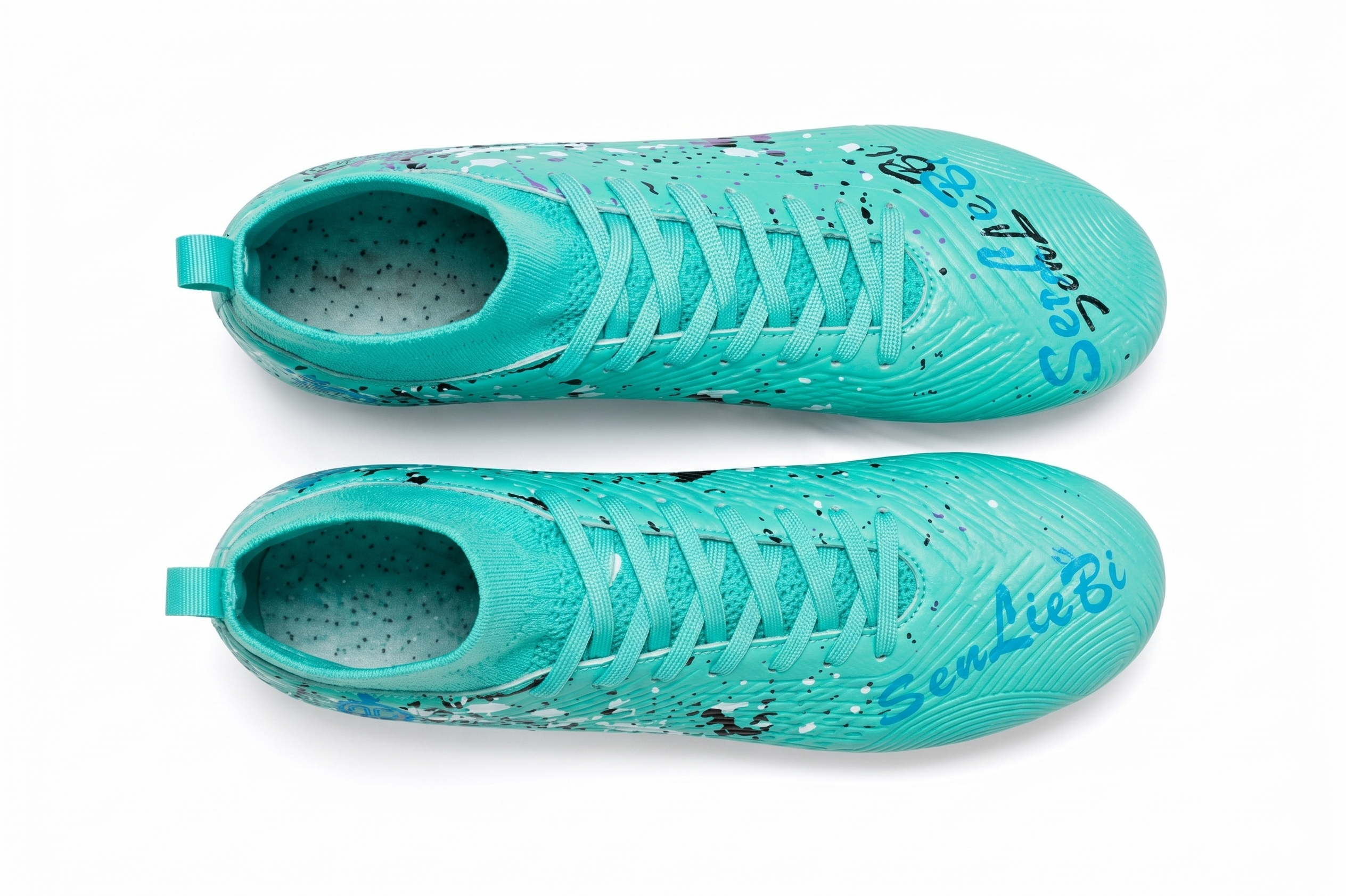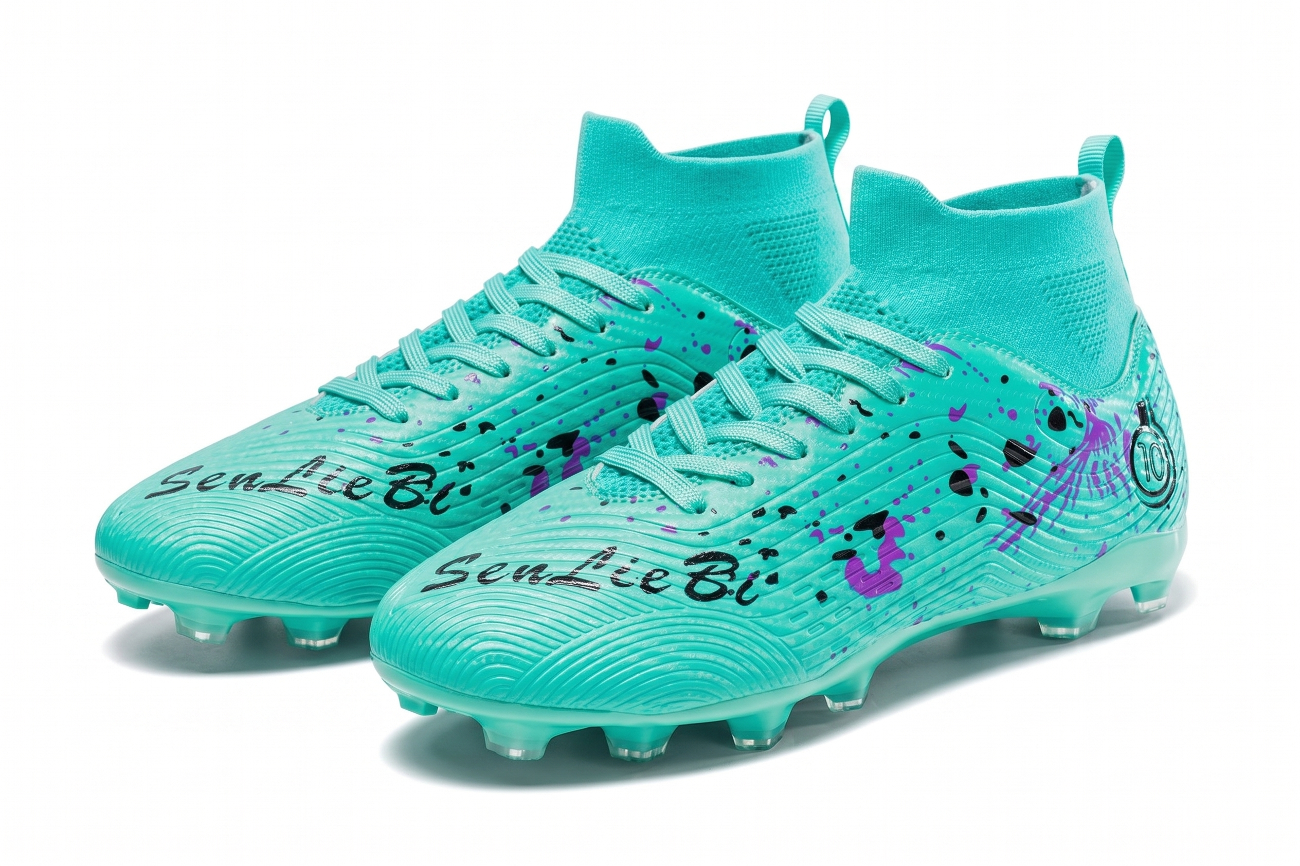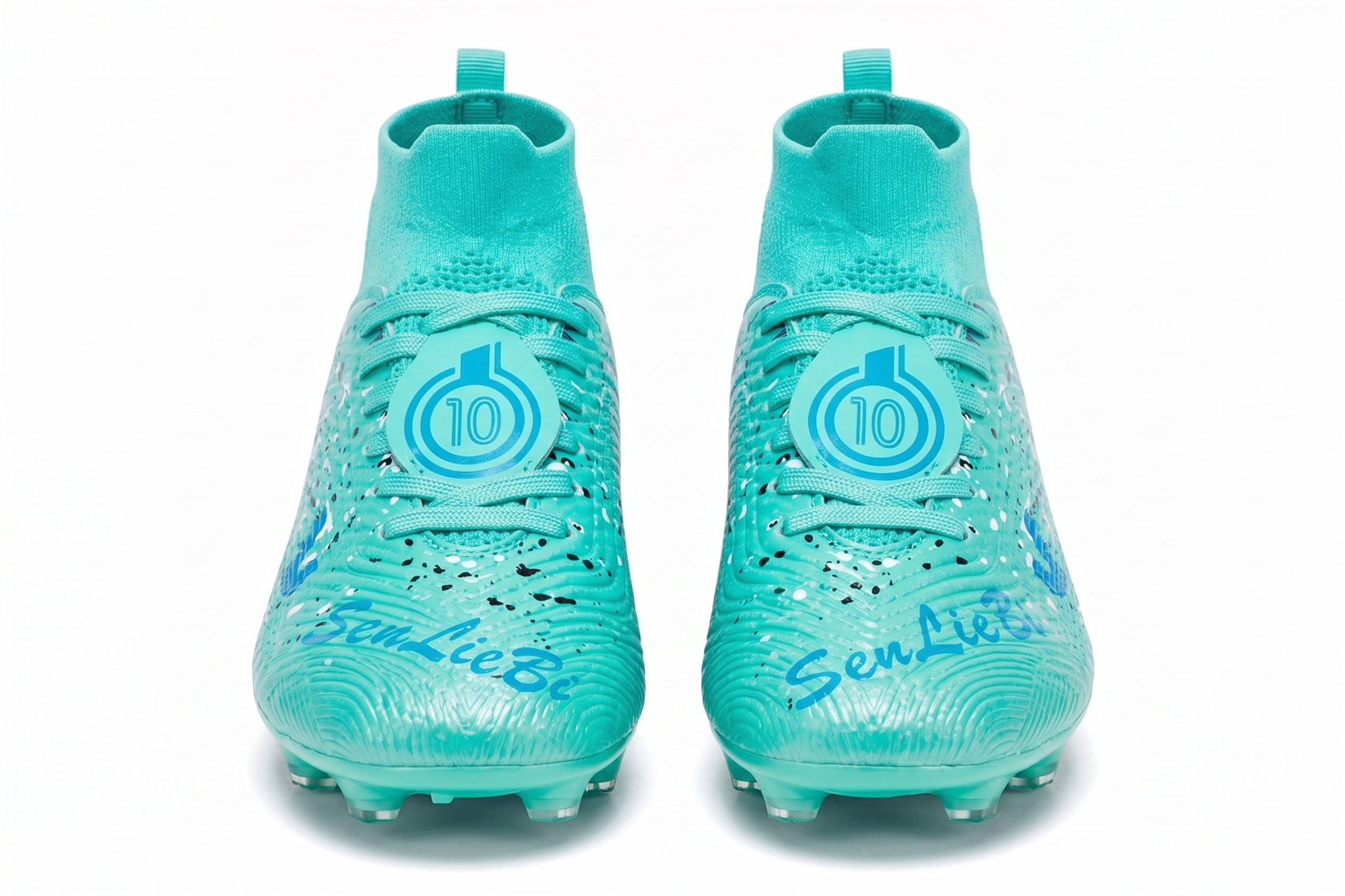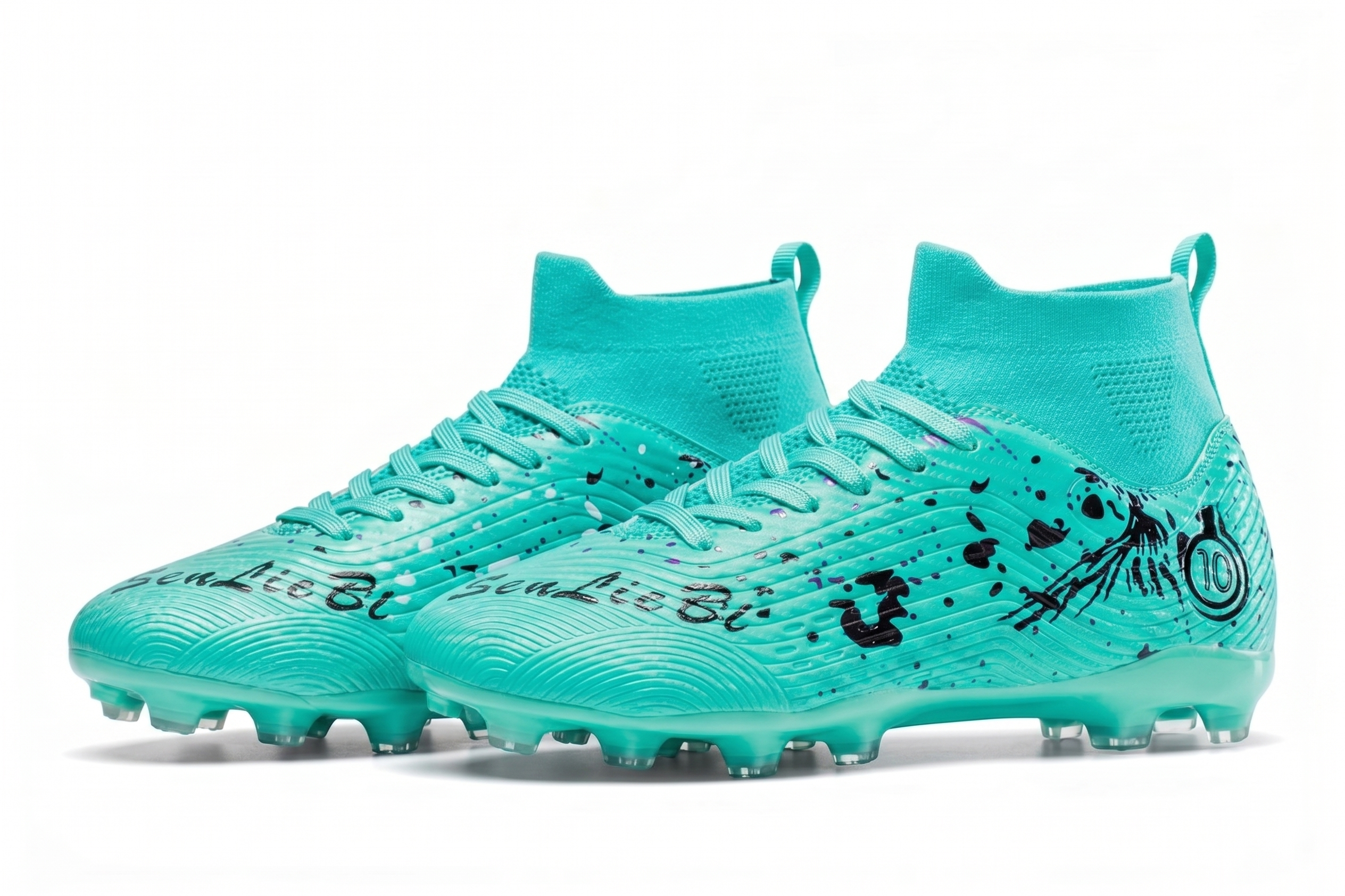 Turkusowe buty piłkarskie Korki obuwie sportowe z kołnierzem skarpetka