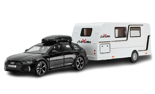 Zestaw zabawki samochód kombi AUDI RS6 z kempingiem w skali 1:32