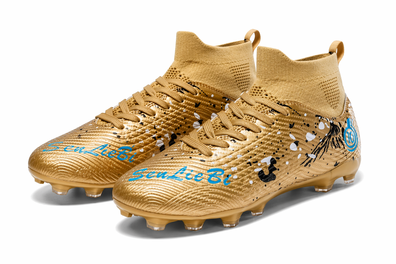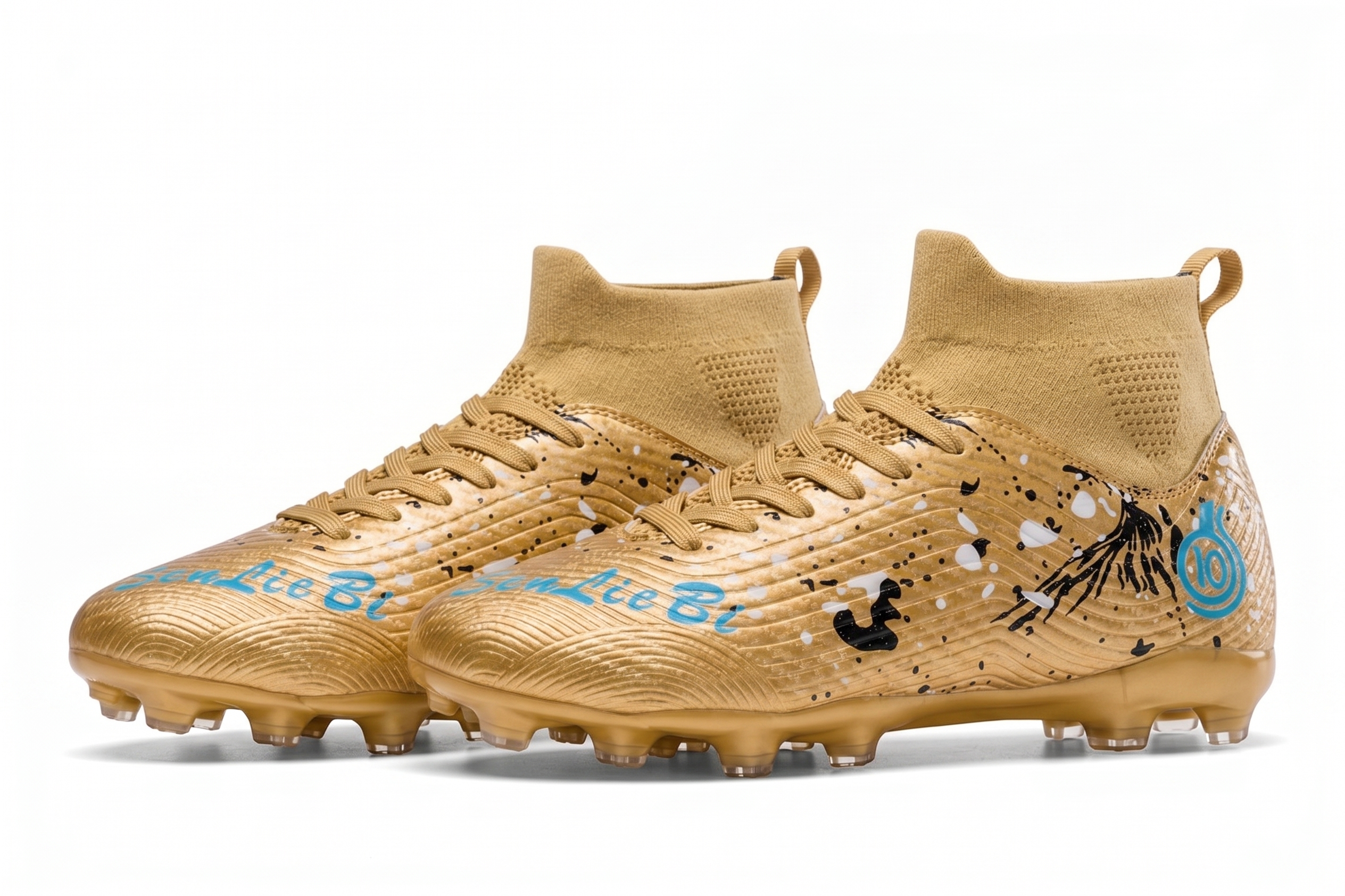 Złote buty piłkarskie Korki obuwie sportowe z kołnierzem skarpetka